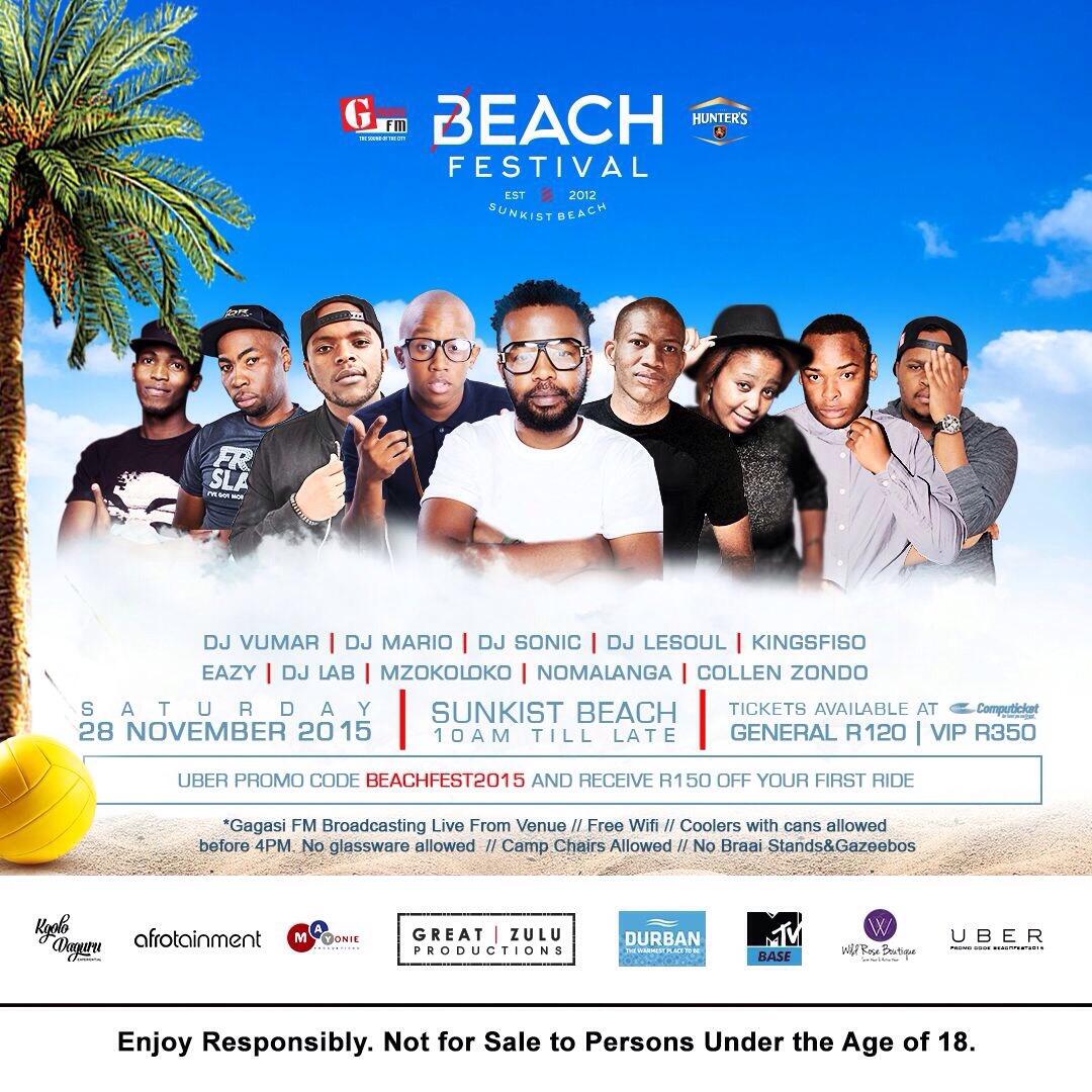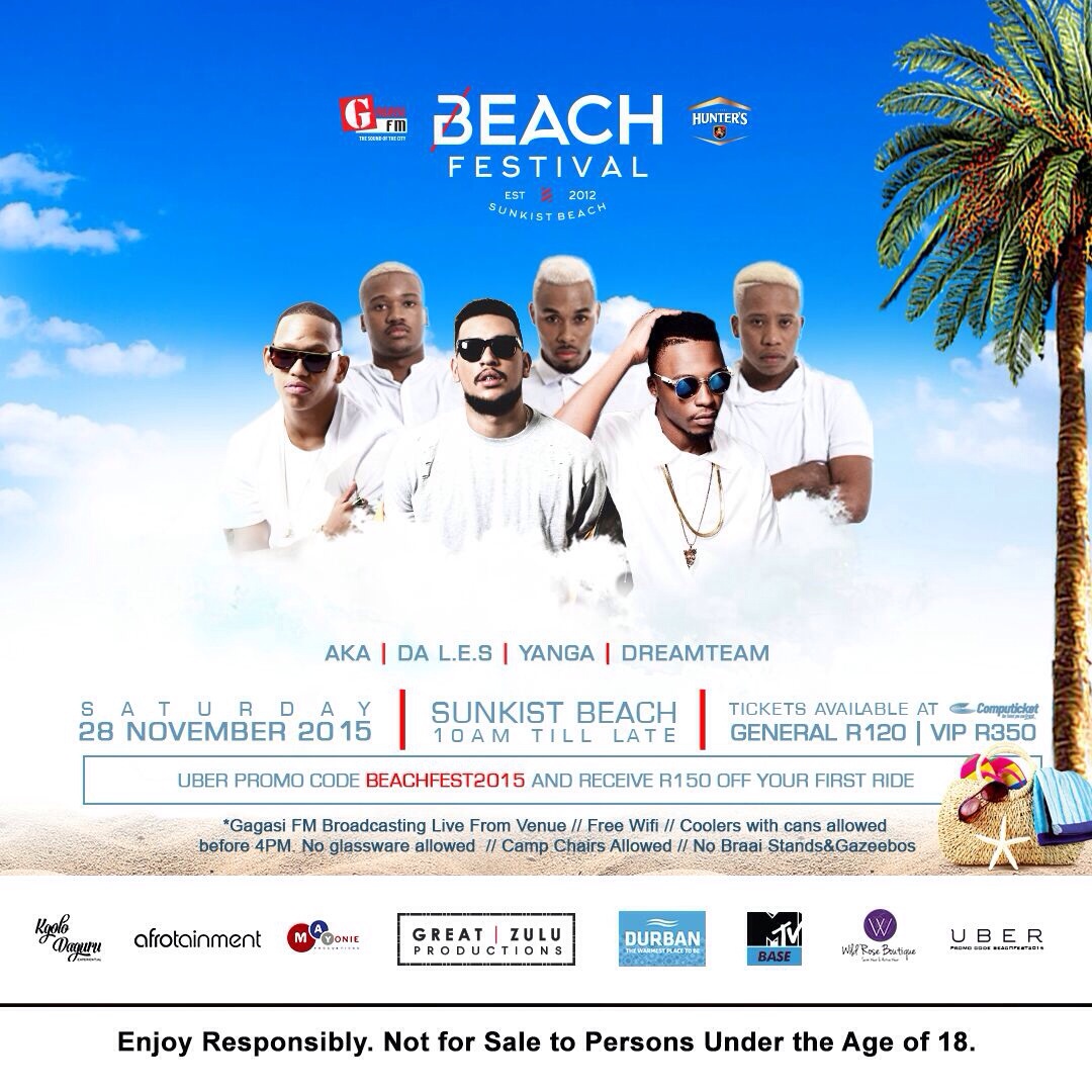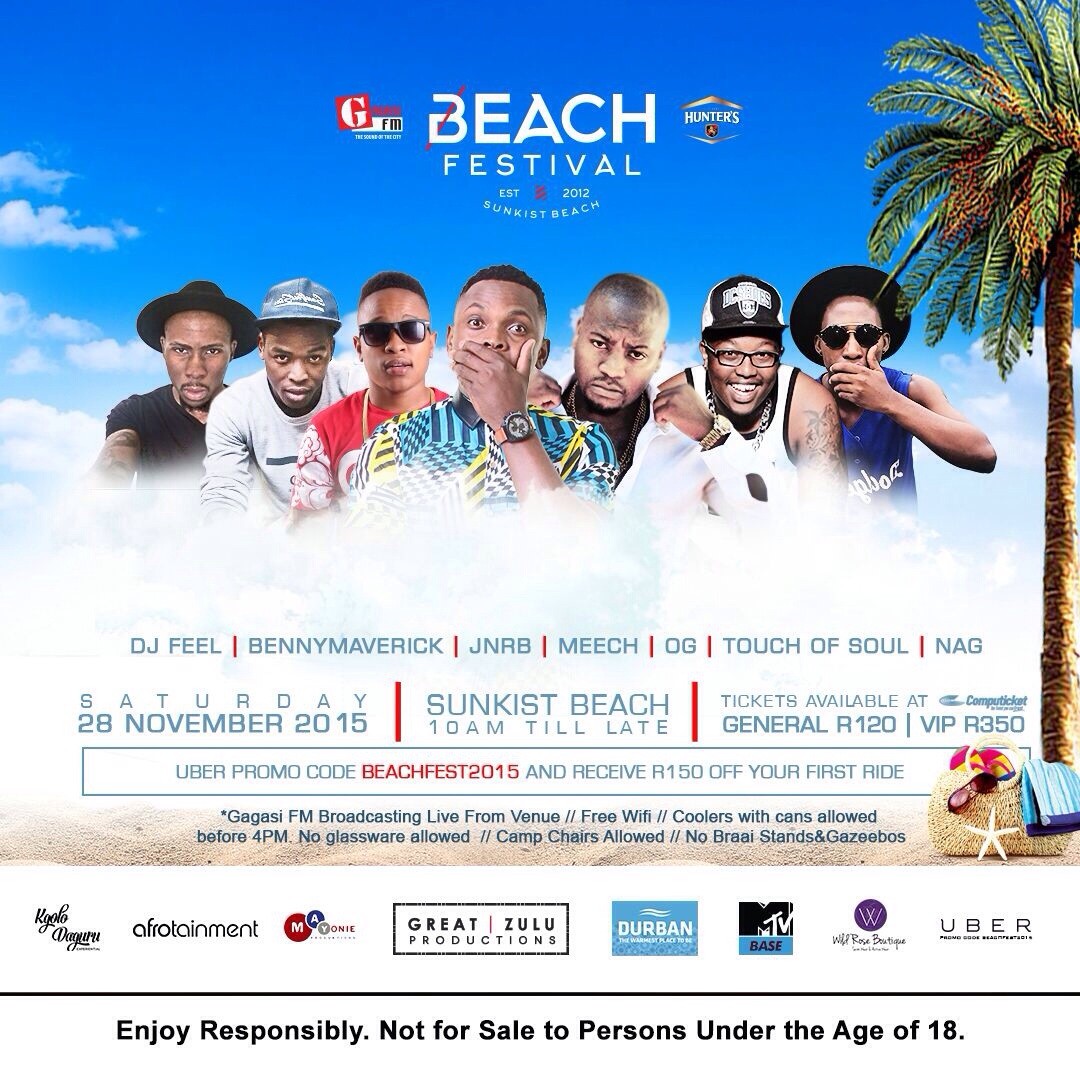 Beach Fest FlyerDurban, South Africa – Beach Fest 2015 organisers last night confirmed the exciting news regarding the return of the annual outdoor Beach Festival at an intimate press briefing. This year’s event promises to have a star-studded line-up, outdoing its predecessors. The team announced that this ultimate summer celebration will be taking place at the Sunkist Beach Durban Saturday, 28th November 2015.