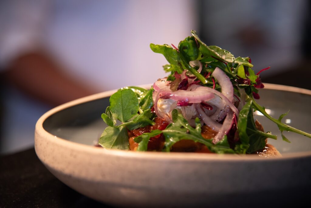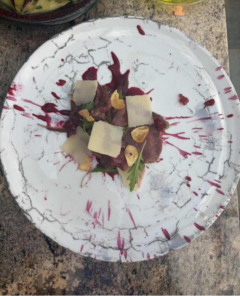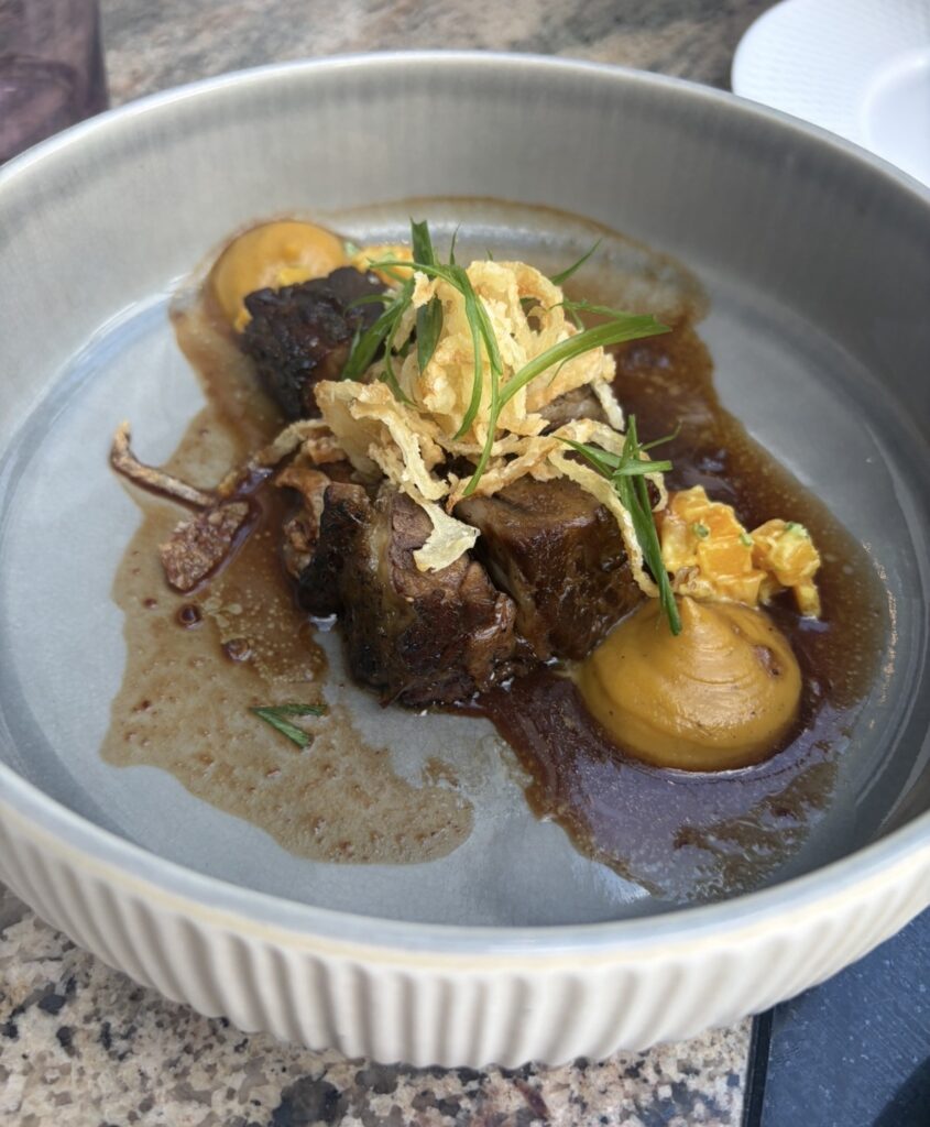 Next up was the Mussel Laksa, Beef Short Rub, Smoked Kudu Carpaccio and the Smoked Snoek Pate. The short ribs are a clear highlight of my whole entire week – slow-cooked until meltingly tender, rich and deeply flavoured with a slash of butternut and onion, delivering pure comfort with a polished edge. But then the lighter dishes shone almost as brightly as my fav. The carpaccio was delicately sliced and perfectly balanced, allowing the quality of the meat to speak for itself paired with the rocket garlic chips and beetroot chutney. Flawless. The mussel laksa adds depth and warmth to the experience, with fragrant coconut broth, tomato atchar and the tender mussels that feel comforting yet refined – everything ideal for a slow Sunday afternoon.